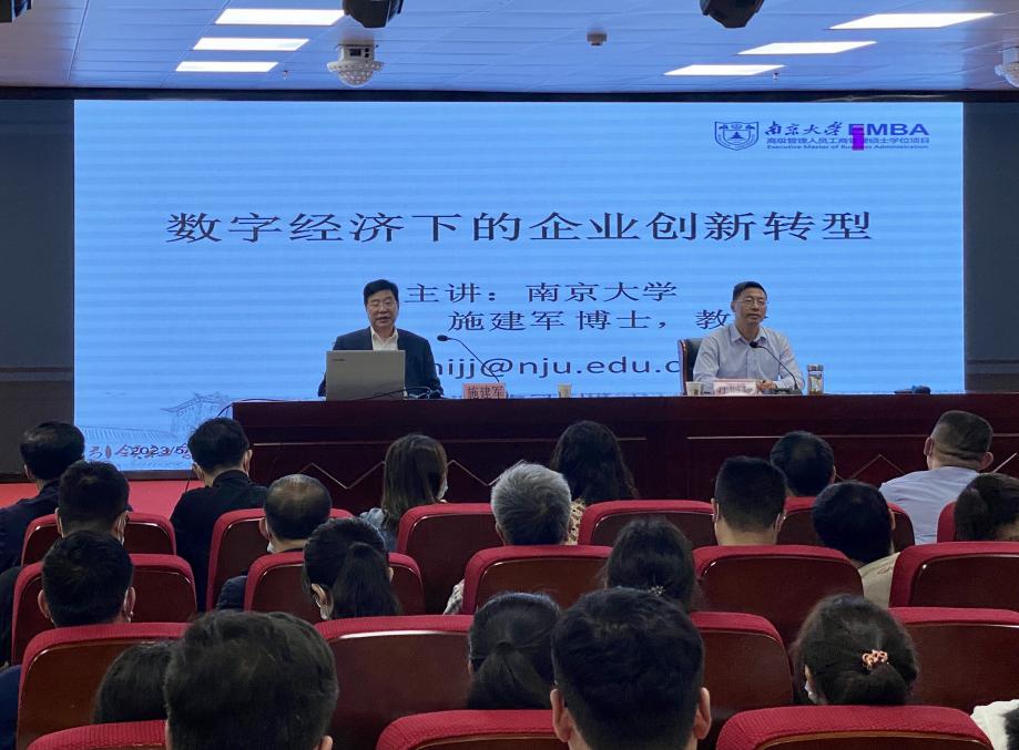 5月4日下午,学校“禹风大讲堂”第二十一期在图书馆五楼报告厅举行。由厦门大学经济学博士,南京大学、对外经济贸易大学教授,博士生导师,国务院政府特殊津贴专家,对外经济贸易大学原校长,南京大学原常务副校长施建军作题为《数字经济下的企业创新转型》的专题讲座。校党委副书记方敏和全体中层干部参加讲座,讲座由汪时珍副校长主持。