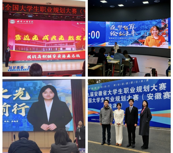 本届大赛由中共安徽省委教育工委、安徽省教育厅主办,共吸引全省121所高校、99.64万名师生参与。bat365官网师生在各赛道奋勇争先,充分彰显了学校职业生涯教育的专业水平:计算机与人工智能学院苏燕获成长赛道本科生组银奖;计算机与人工智能学院胡翔获就业赛道本科生组银奖;财务与会计学院苏晓雪获就业赛道本科生组铜奖;计算机与人工智能学院魏双双老师主讲的《大学生职业生涯规划指导与实践》课程,凭借深厚的教学积累、创新教学设计,在教学赛道斩获铜奖。
