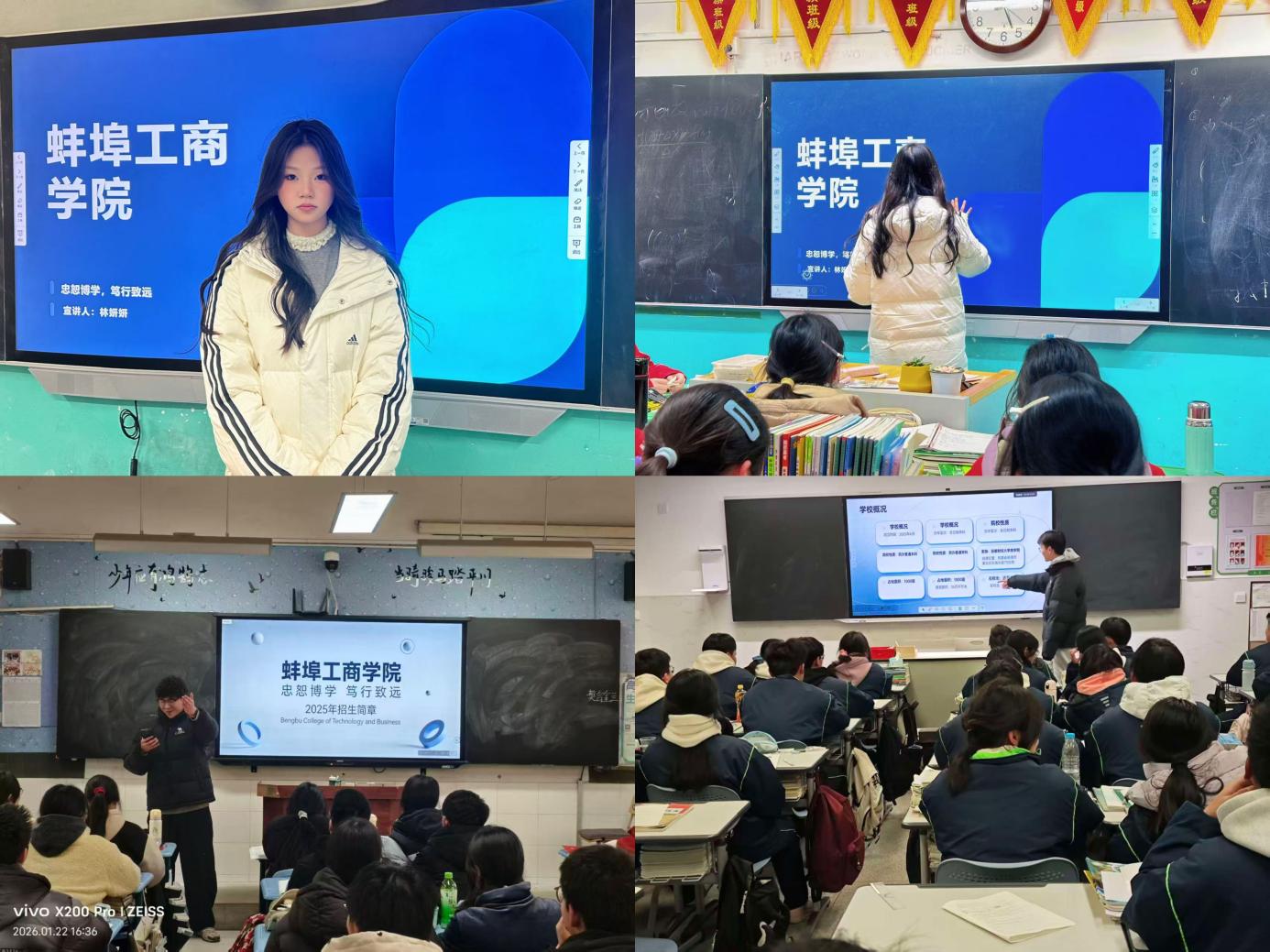 情系母校,薪火相传。寒假期间,数学与科学学院的学子们重返高中母校开展招生宣讲活动,为高校与高中搭建起沟通的桥梁。宣讲过程中,学子们结合自身专业的学习体验,全面介绍了学校的办学理念、校园文化、专业特色与办学优势,分享了自己的学习方法与成长感悟,耐心解答学弟学妹们在择校、选专业、学业规划等方面的困惑,用真诚与热情传递着蚌工商的温度。