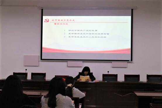 活动中,李老师以“如何讲好中国共产党的故事”为主题展开叙述。她指出:讲好中国故事是扩大中华文化影响力的基本途径,这需要第三党支部的学生们加强对中国共产党历史的收集与整理,将中国共产党的精神融入到自己的生活中。随后,她对党史的发展脉络进行了整理,并且生动地讲解了一系列与党史有关的革命故事。她强调:革命精神是党和国家的宝贵财富,学生们应认真学习红色精神,从中汲取精神养分。最后,李老师与本党支部的预备党员们就中国共产党历史进行互动讨论。