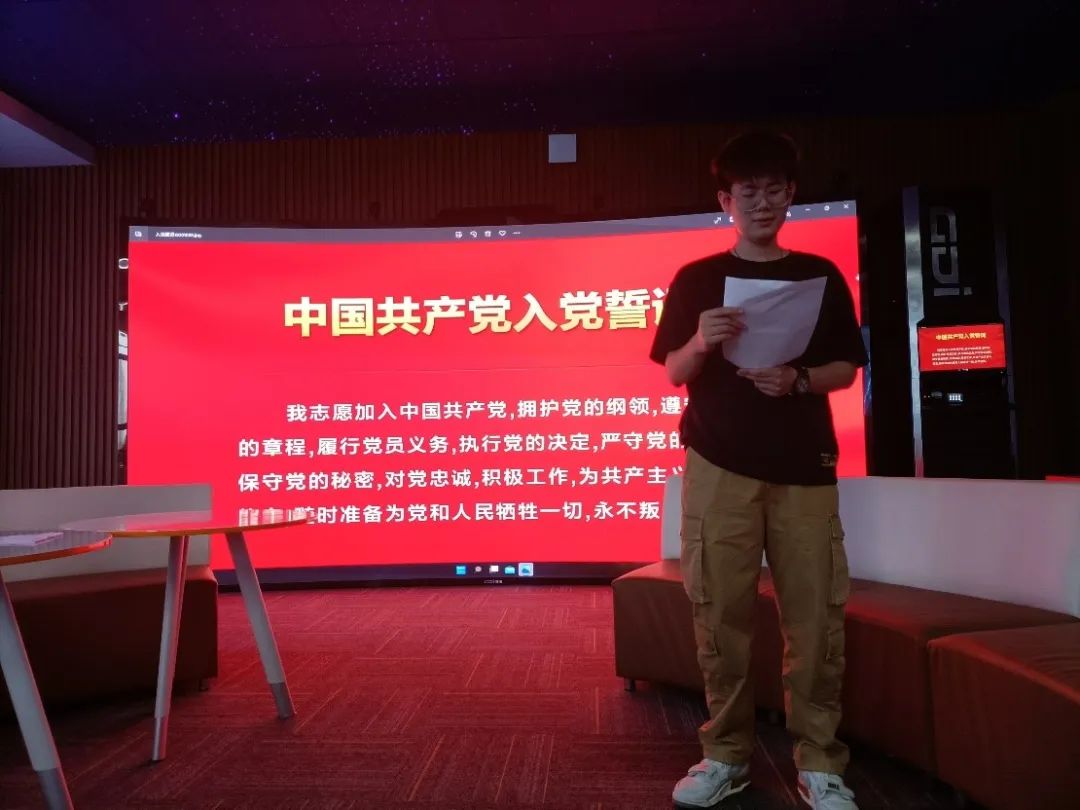 党员代表赵权洲同志表示:“作为一名新时代新青年,历史的“接力棒”已经交到了我们手中,开创未来,我们必将不辱使命。我们要树立对中国特色社会主义的信念、对中华民族伟大复兴中国梦的信心,让理想信念在创业奋斗中升华,让青春在创新创造中闪光。”