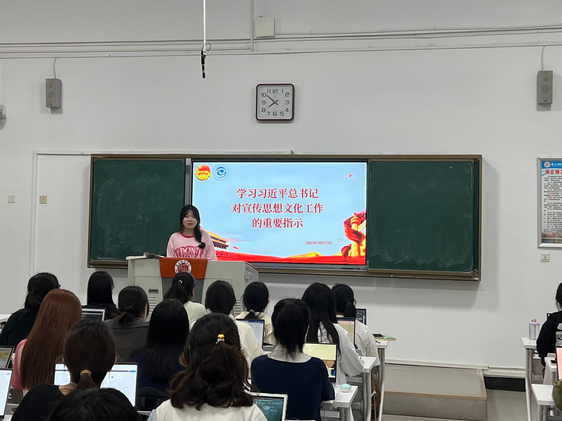 宣传思想文化工作事关党的前途命运,事关国家的长治久安,事关民族凝聚力和向心力,是一项极其重要的工作。新时代青年学生要始终牢记自身职责,听党话、跟党走,勤奋学习,敢于实践,用实际行动践行青春誓言。