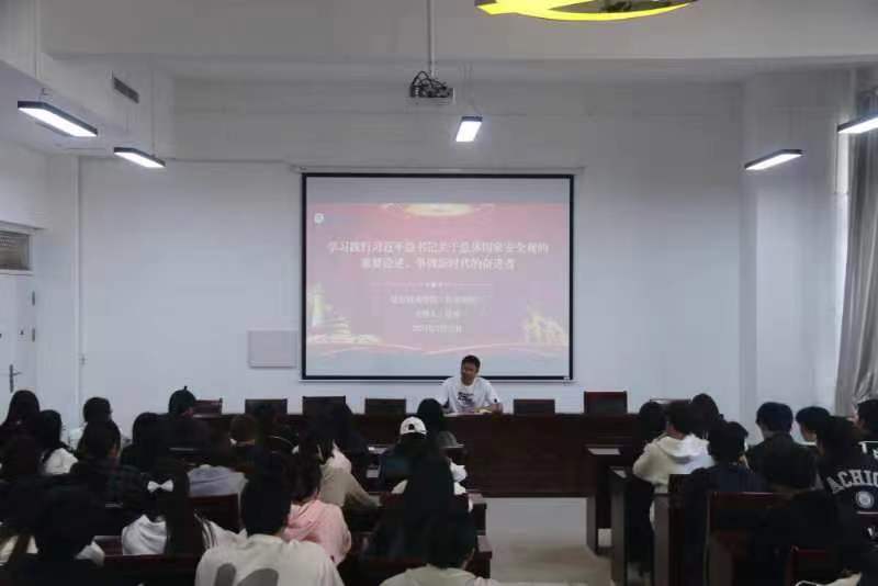 吴楚从“一个观念”“一部法律”“一个节日”“一个使命”等内容入手,围绕国家安全和保密工作面临的复杂形势,结合平时工作生活中的点滴和详实的案例,为全体学员讲解了国家安全和保密工作的重要性以及泄密带来的危害和严重后果。   杜冰从大学生在维护国家安全的权利和义务,总体国家安全观与大学生的关系,以及如何维护国家安全等对总体国家安全观进行了深刻阐释和详细解读。他强调要坚持以习近平新时代中国特色社会主义思想为指导,全面深入贯彻总体国家安全观,坚决筑牢国家安全防线。