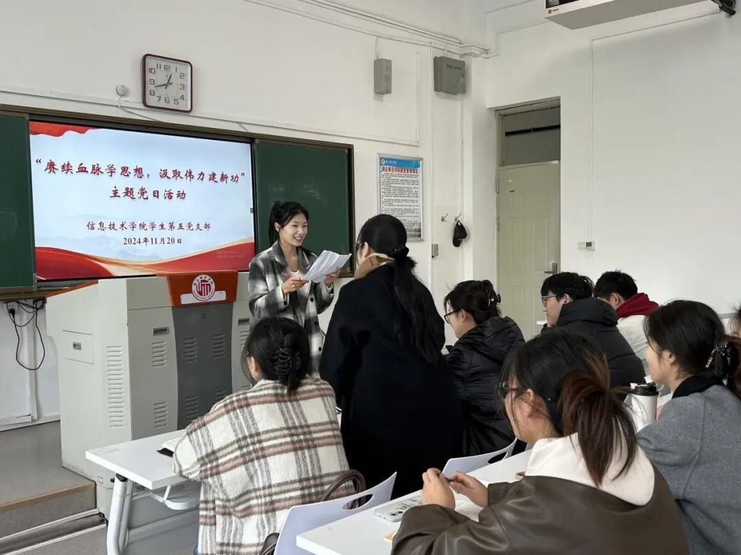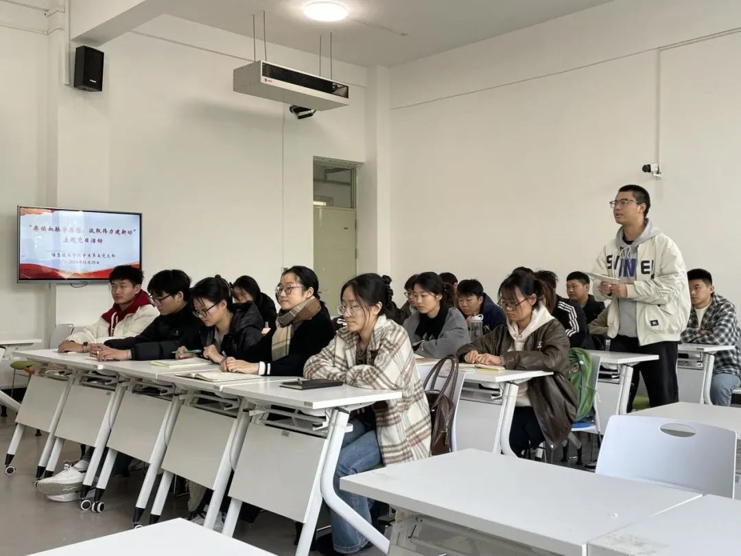 11月20日,jinnianhui金年会诚信至上学生第五党支部在行方楼305教室开展“赓续血脉学思想,汲取伟力建新功”主题党日活动,活动由党支部书记吴楚主持,支部全体党员参加。