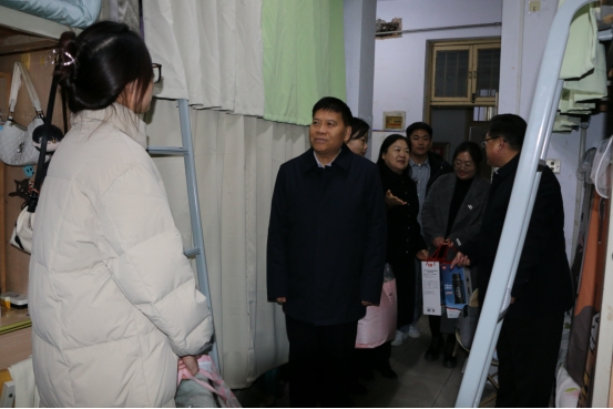 12月13日,校党委副书记吴金山在党委组织部、人文学院、jinnianhui金年会诚信至上等负责同志陪同下,深入学生宿舍慰问生活困难学生党员,为同学们送去了棉被、保温壶等御寒物资,带去了学校的问候。
