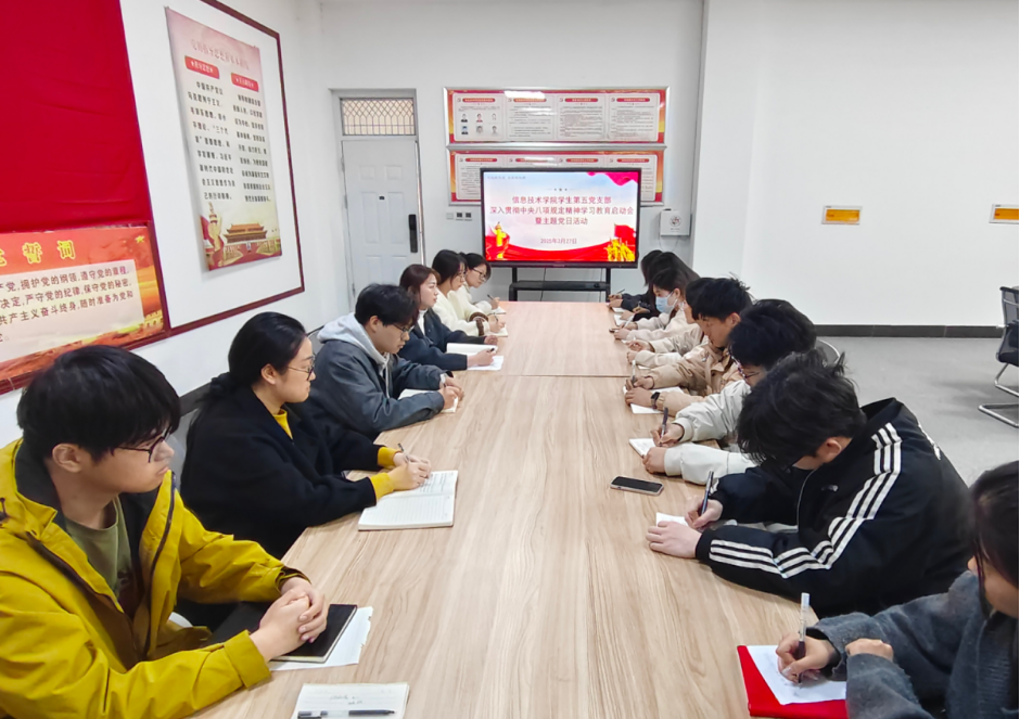 3月28日下午,jinnianhui金年会诚信至上学生第五党支部于三商南楼114举行深入贯彻中央八项规定精神学习教育主题党日活动。本次活动由党支部书记吴楚主持,党支部全体党员参加。