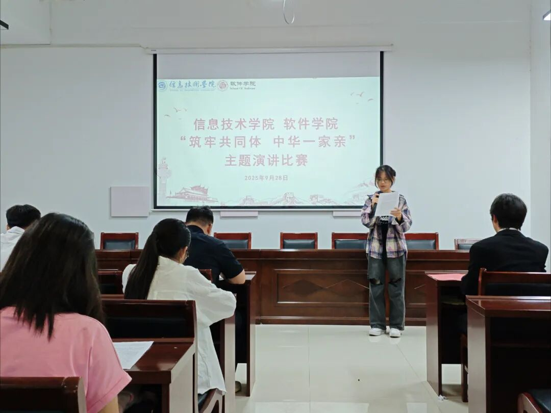 本次“筑牢共同体,中华一家亲”主题演讲比赛的成功举办,不仅为同学们搭建了一个展示自我、相互交流的优质平台,更以声为媒,传递情感,彰显了信息学子的爱国热情和报国之志。