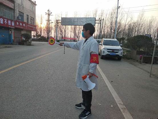 在认识到防疫工作的紧迫性后,他第一时间加入到上蔡县南徐村“疫情防控志愿者小组”,和本村工作人员一起开展了地毯式摸排工作。同时对武汉返乡人员加以重点排查和询问,并向村民宣传如何预防“新型冠状病毒肺炎” ,告诉大家少出门,勤洗手、戴口罩、多通风等防控方法。此外,他还每天坚守卡点,测量往来人员体温,对出入人员实行严格登记,有效控制人员流动,他的这一举动更加有效的保证了村民们的安全。