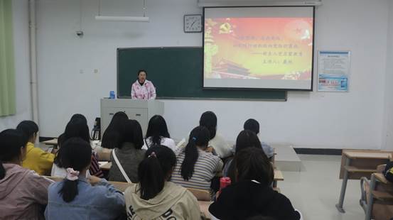 会议伊始,张主任首先给大家介绍了专业设置、选课系统、学分制管理等方面问题。他提醒学生重视选课,避免延期毕业或无法毕业。随后,戴老师从党情介绍、党员要求、入党流程、入党动机等方面,对新生进行了入党启蒙教育,期望他们加强党性修养,争取早日加入党组织。