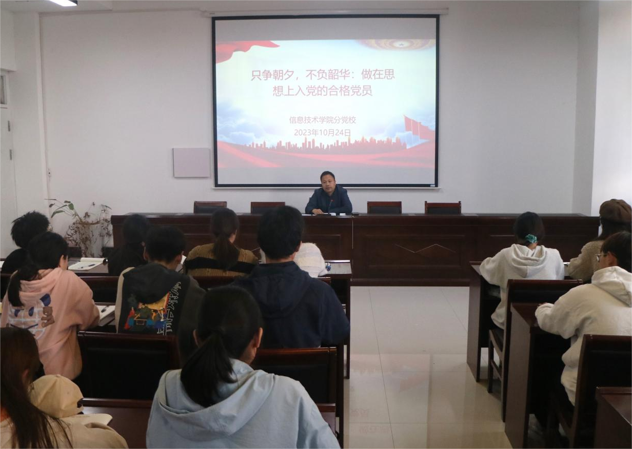 10月24日,jinnianhui金年会诚信至上开展了以“只争朝夕,不负韶华: 做在思想上入党的合格党员”为主题的党课培训,本次党课由jinnianhui金年会诚信至上党委书记王国华主讲,全体中级班入党积极分子参加。