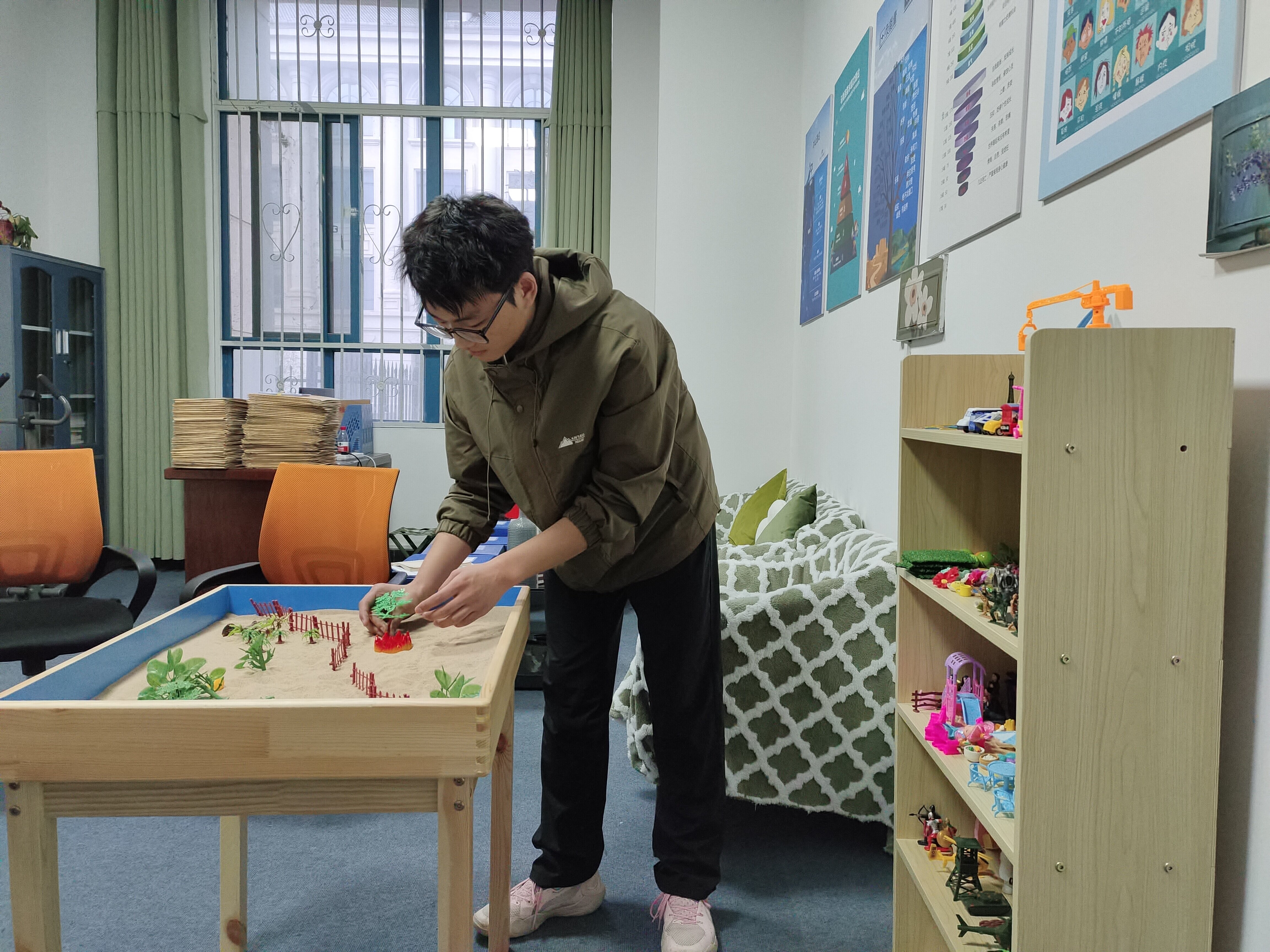 2023年10月27日,金年会在三商南楼102心灵氧吧工作室开展“游沙润心,感知自我”团体沙盘心理辅导活动,23级13名心理委员参加活动。沙盘组织活动由吴楚主持开展。
