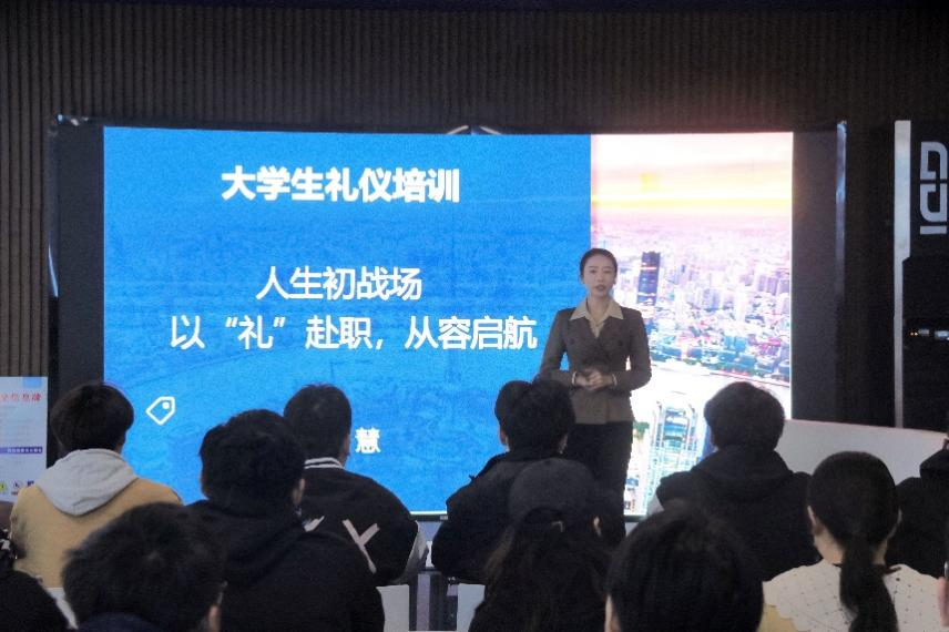 3月19日,jinnianhui金年会诚信至上在三商楼VR活动室开展“学礼仪,树新风”礼仪培训会,党委副书记袁慧为金年会50余名学生干部授课。