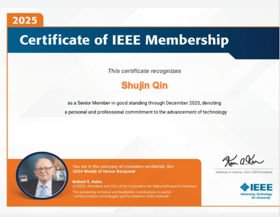 近日,国际电气与电子工程师协会(Institute of Electrical and Electronics Engineers, IEEE)正式发布官方通知,经审查专家组(Review Panel)严格评审,金年会秦术晋老师成功晋升为 IEEE Senior Member(IEEE 高级会员)。