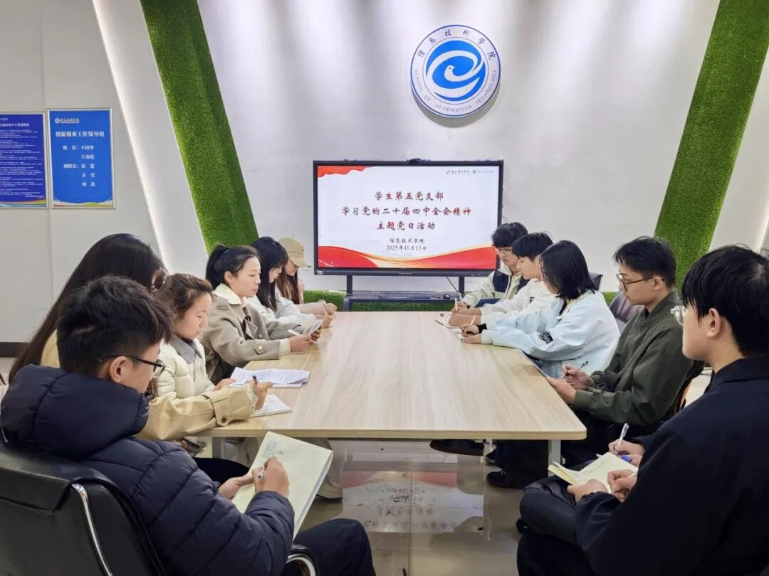 会议伊始,吴楚带领全体党员深入学习全会公报核心内容,重点解读了全会提出的“加快高水平科技自立自强,引领发展新质生产力”等重要部署,并结合专业实际对学生党员提出要求:一是要深学细悟全会精神,将理论学习与思想淬炼相结合,筑牢信仰之基;二是要锚定专业发展方向,把技术攻关作为核心任务,在人工智能、大数据等领域下苦功,练就过硬本领;三是要践行党员使命,主动参与校园信息化建设、乡村数字帮扶等实践活动,以实际行动服务群众。